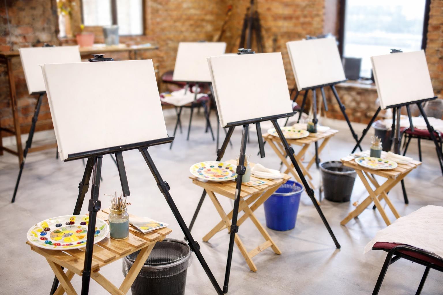 Farben, Stifte, Pinsel, Staffeleien und vieles mehr!